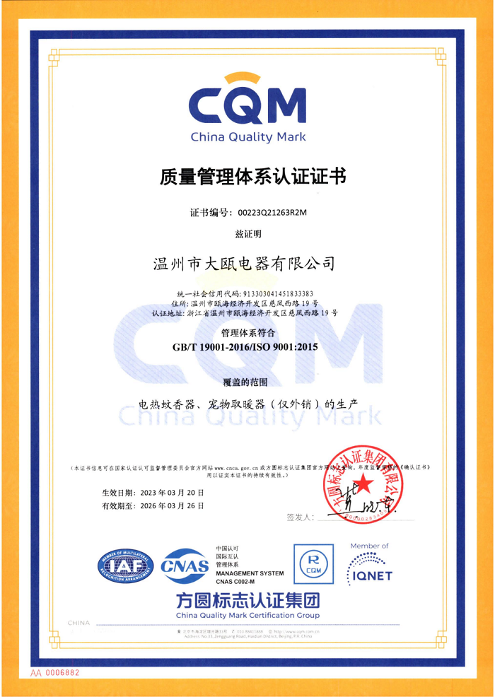 秉承“以人為本,以質(zhì)取勝”的經(jīng)營理念,三十余載櫛風(fēng)沐雨,踐行“成就客戶、價(jià)值為本、誠信務(wù)實(shí)、追求卓越”的核心價(jià)值觀。大甌公司堅(jiān)持以產(chǎn)研一體化的經(jīng)營模式與差異化的競(jìng)爭(zhēng)戰(zhàn)略為基點(diǎn),持續(xù)推出細(xì)分市場(chǎng)上的多種類產(chǎn)品,豐富產(chǎn)品矩陣,滿足消費(fèi)者多樣化需求,助力新型驅(qū)蚊行業(yè)高速發(fā)展。