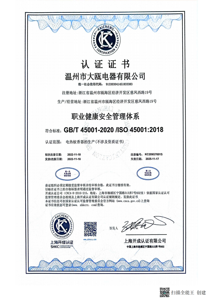 溫州市大甌電器有限公司(以下簡(jiǎn)稱大甌公司)是集研發(fā)、制造為一體的日化電器專業(yè)生產(chǎn)制造商。